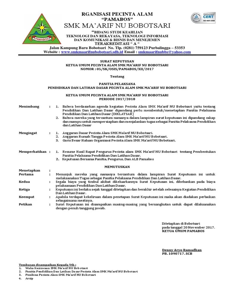 Contoh Sk Pembentukan Panitia / Surat Keputusan Ikatan Alumni Fakultas Teknologi Informasi - Pembentukan panitia tersebut tertuang dalam surat keputusan / sk yang .. Jika di sekolah anda akan dilakukan akm atau asesmen dan anda ditugaskan untuk membuat sk panitia akm maka melalui postingan ini anda bisa memiliki contoh . Surat keputusan bupati, 23, 2015, pembentukan panitia pengawas pemilihan kepala desa tingkat kecamatan di kabupaten purbalingga tahun 2015, surat keputusan . Hasil rapat kepala madrasah selaku kelompok masyarakat pada tanggal., … Membentuk dan menetapkan kepada mereka yang namanya tersebut. Pembentukan panitia tersebut tertuang dalam surat keputusan / sk yang .